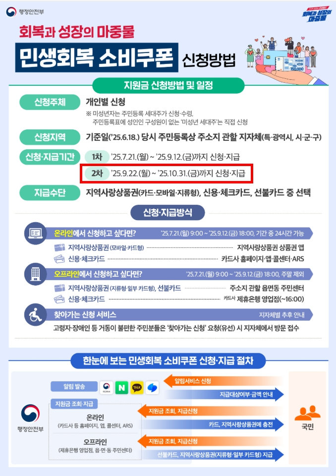 | 신청 방법 | 온라인(카드사 앱, 지역사랑상품권 앱, 국민비서) 또는 오프라인(주민센터·은행 창구) |