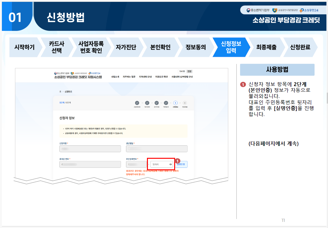 - 1단계: 소상공인24 홈페이지(credit.sbiz24.kr)에 접속합니다.