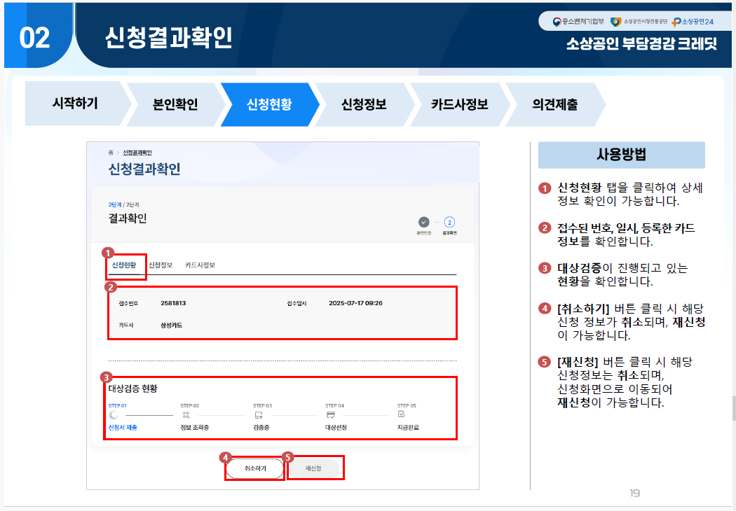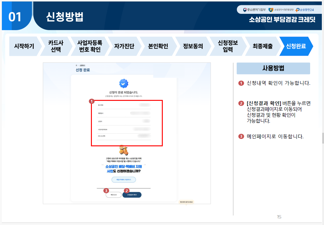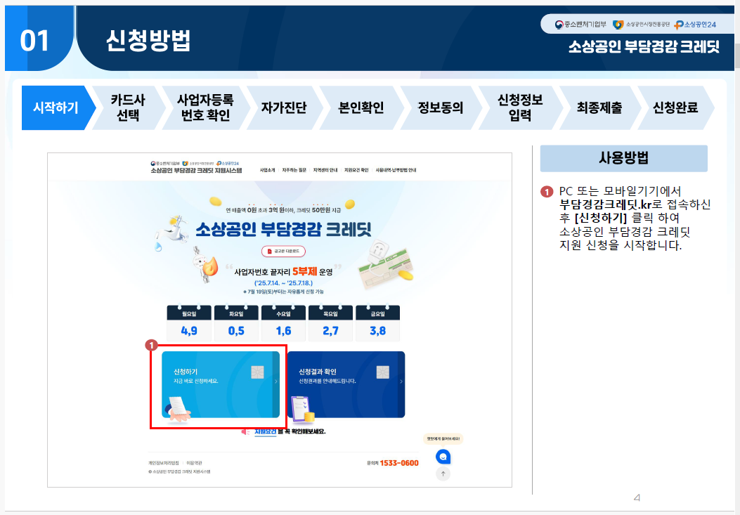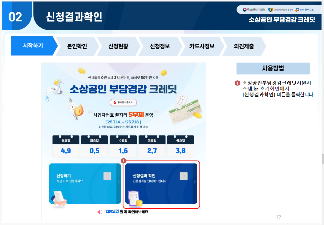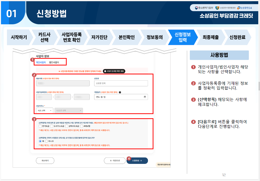 - 3단계: 신청이 완료되면 2~3일 내에 심사가 진행됩니다. 심사 통과 후 등록된 카드로 공과금이나 4대 보험료를 결제하면 크레딧이 자동으로 차감됩니다.