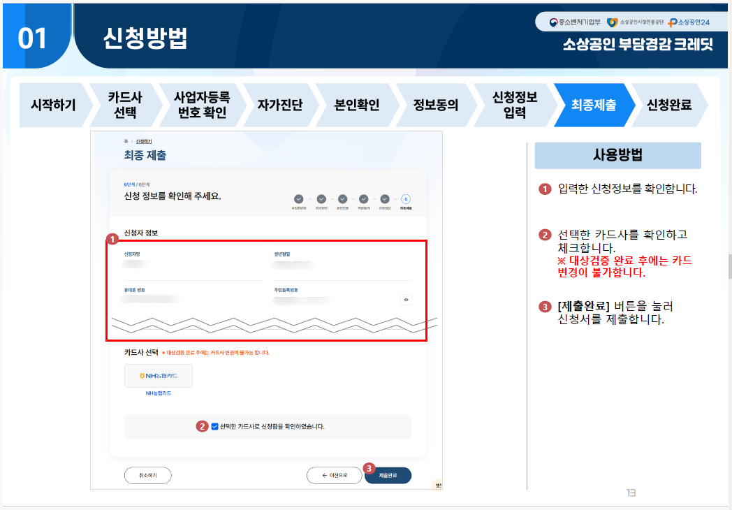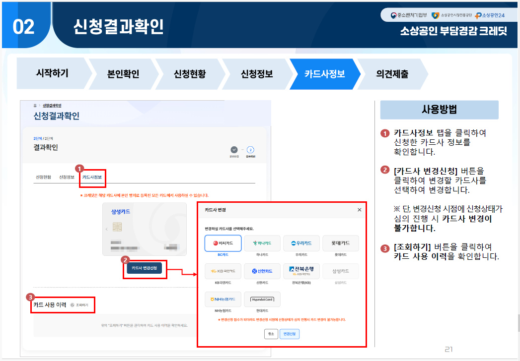 한 번 신청하면 취소하거나 카드사를 변경할 수 없으니, 신중하게 신청하시길 바랍니다.