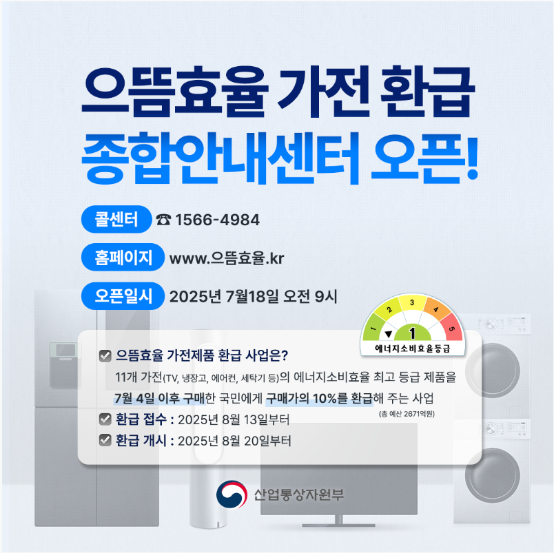 - 내수 진작 및 소비자 혜택: 가전산업을 활성화하고, 국민들의 생활비 부담을 덜어주려는 경제적 효과도 기대하고 있습니다.