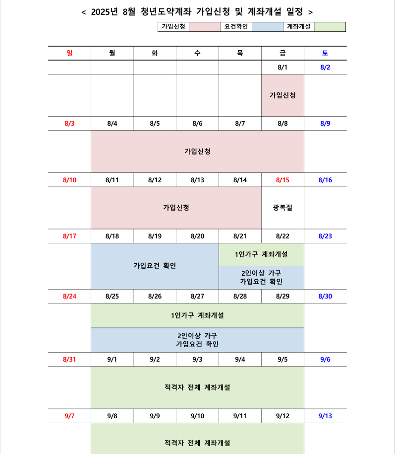 [서민금융진흥원 누리집 - 공지사항 - 청년도약계좌 가입신청 및 개좌개설 일정 안내(25년 8월)]